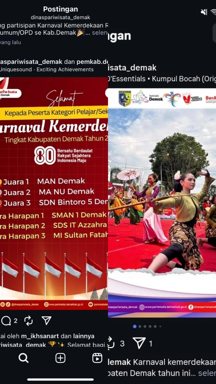 Demak – Dalam rangka memperingati Hari Ulang Tahun ke-80 Republik Indonesia, Pemerintah Kabupaten Demak melalui Dinas Pariwisata menyelenggarakan Karnaval Kemerdekaan Tingkat Kabupaten Demak Tahun 2025. Ajang tahunan yang selalu dinanti masyarakat ini berlangsung meriah dengan menampilkan kreativitas para peserta dari berbagai sekolah dan lembaga pendidikan.